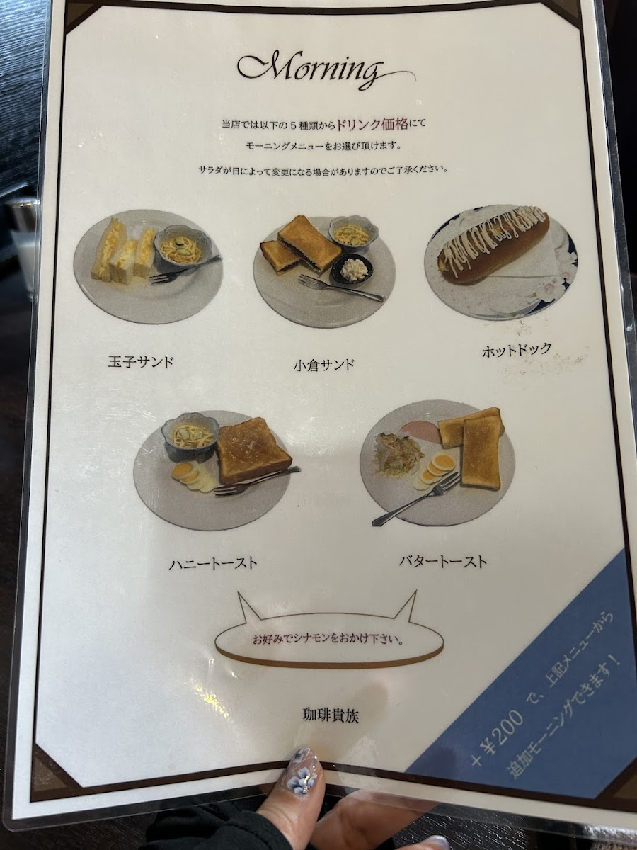 The menu features a tempting array of options, but don’t miss the highly recommended charcoal-roasted coffee. According to customer ちか (Chika), the deep-roasted coffee is rich, smooth, and perfect for those who savor a robust cup. For a delightful pairing, consider the morning set, complete with a choice of delicious options like the egg sandwich or the ogura sandwich. Chika suggests adding freshly whipped cream to the ogura, creating a sweet balance that enhances every bite.